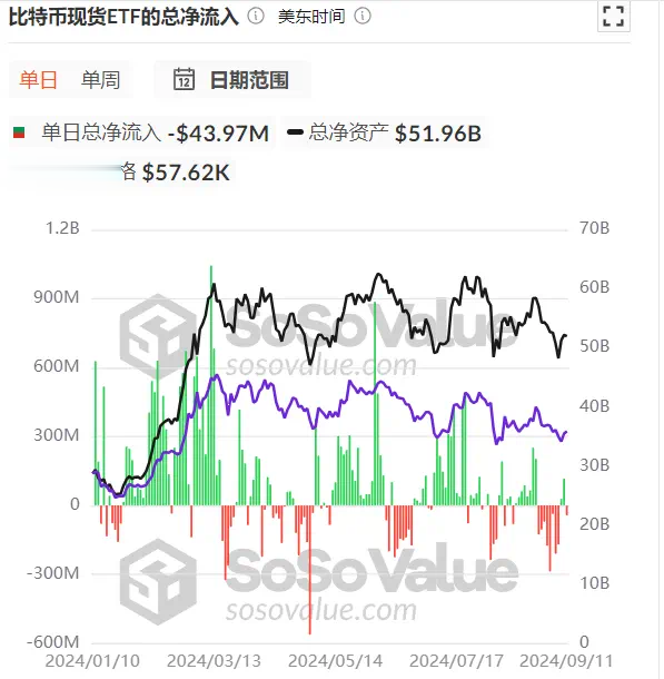 2021 年的牛市周期以及 2024 年年初美 SEC 通过了比特币现货 ETF ,同样给加密市场带来相当高的活跃热度。截止 9 月 11 日数据, BTC 现货 ETF 总净流入达到 170 亿美元。