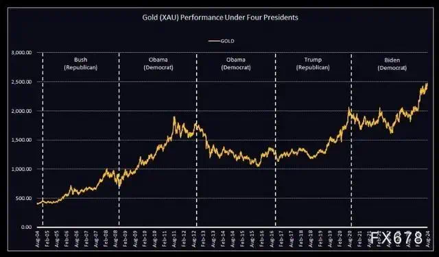 有趣的是,大选还对黄金的短期走势有一定影响。与美股类似,作为避免资金的黄金也同样在大选期间,其需求量变高,因此也会在大选前几个月不断上涨。